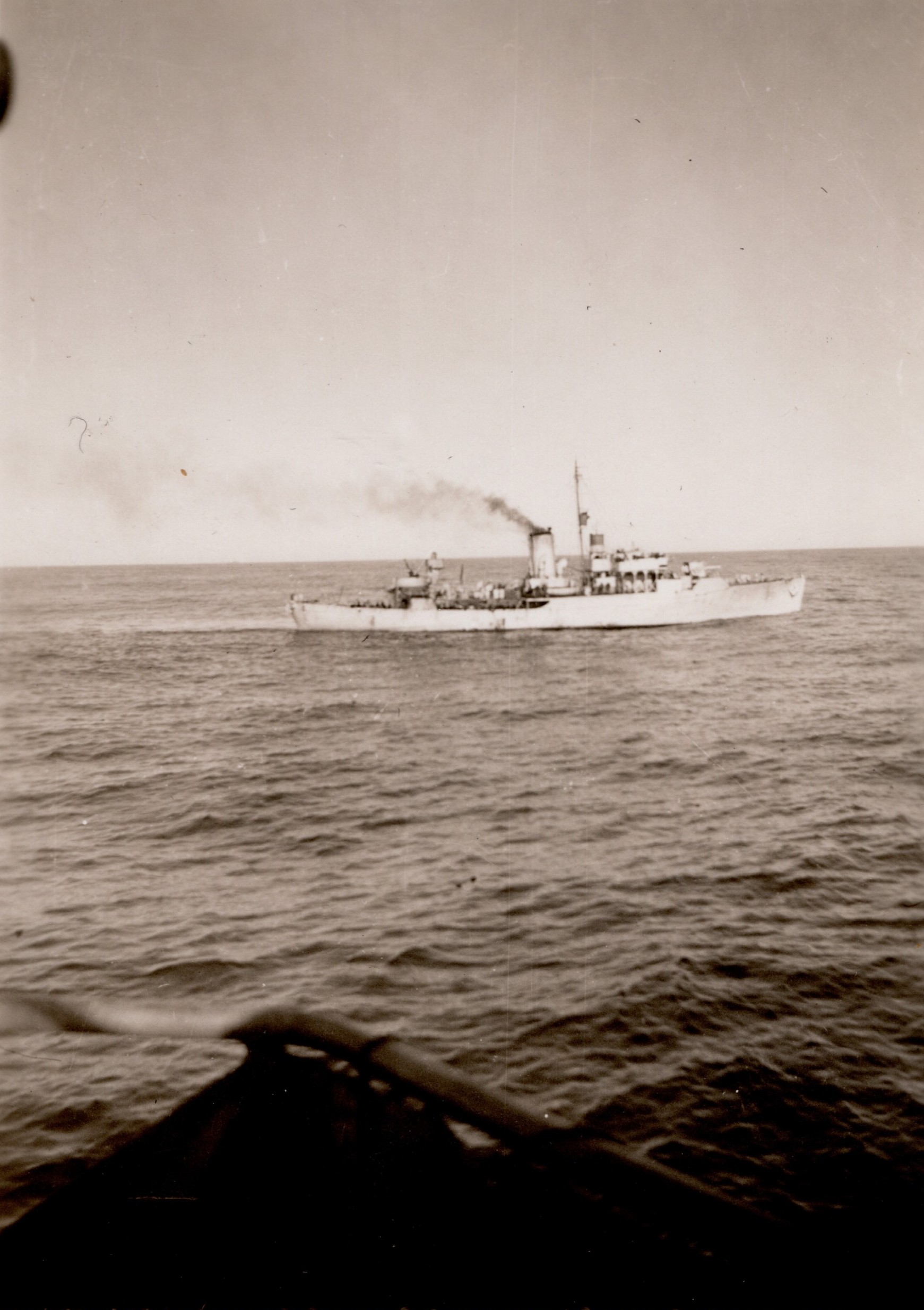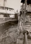 (NFA019) Telegraphist John Schenk coming over the side of "X" gun deck on HMCS NEW GLASGOW K320 - May 1944 (NFA020) Able Seaman Ferris, Submarine Detector Lovering and Submarine Detector Lamore in a Carley float on HMCS NEW GLASGOW K320 at Halifax - May 1944 (NFA021) HMCS GIFFARD K402 on convoy duty - May 1944 // Webmaster's note: The only convoy GIFFARD escorted in May 1944 was HX.291, New York City to Liverpool, England. The NEW GLASGOW was also an escort for this convoy.