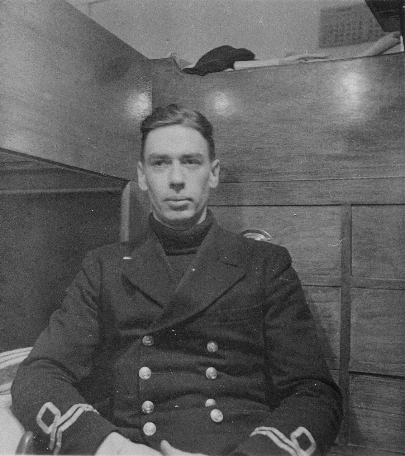 Officers and ratings of HMCS NEW WESTMINSTER K228 - 1944 (HST071) Yeoman A.W. Moore (HST072) Lt Ronald Cass - Electrical Lieutenant /Group Radar Officer. Note: Lt Cass was serving in HMCS Dunver at this time. As group Elect/Radar officer he would have been on the ships of the EG at various times. (HST073) Lt Campbell E. Cork, MBE, from Toronto, ON. Passenger on HMCS NEW WESTMINSTER - 1944 (HST074 - HST075) Lt Roy Rowsell