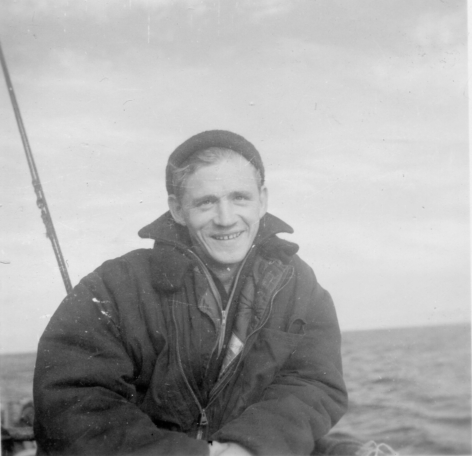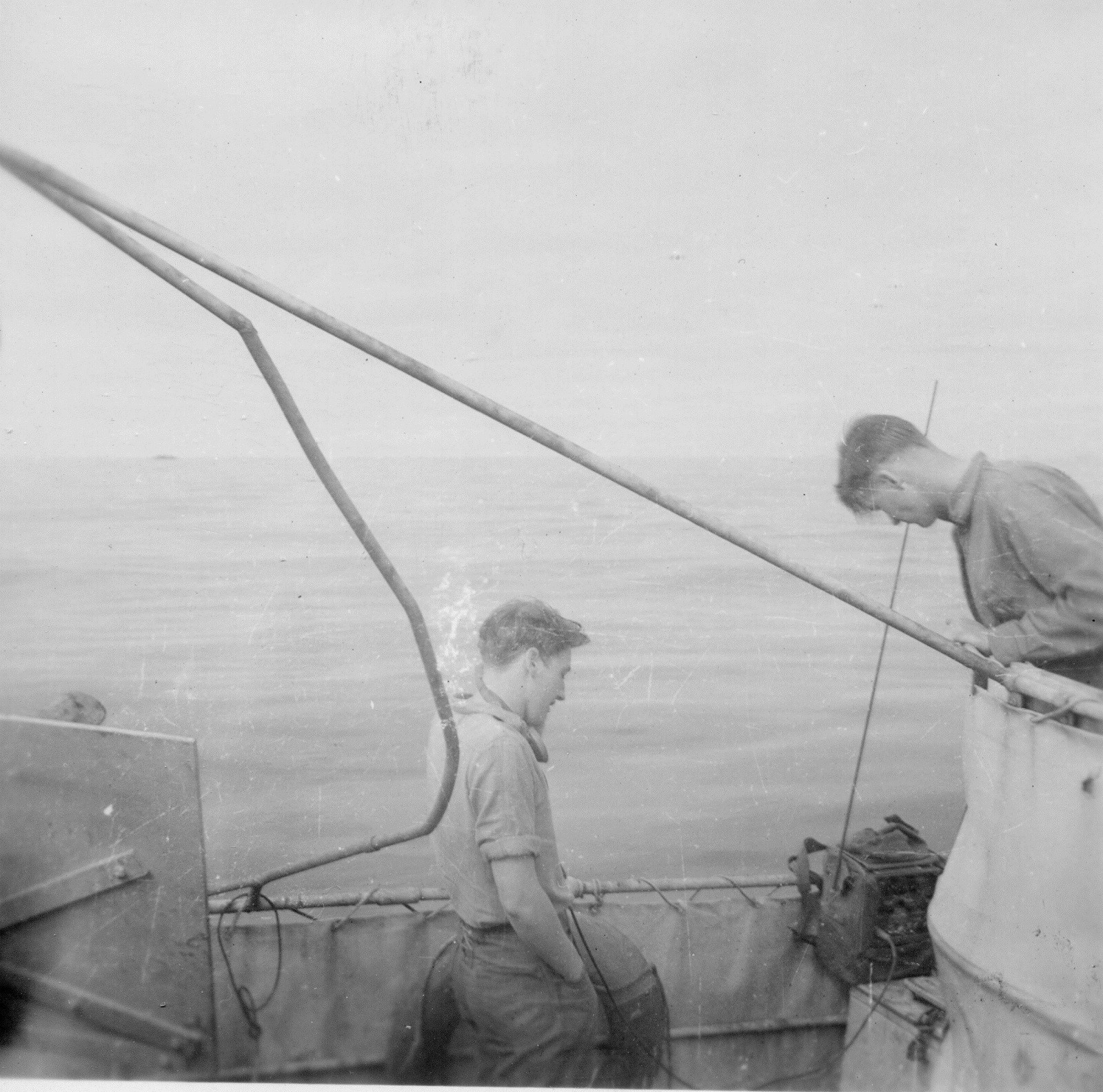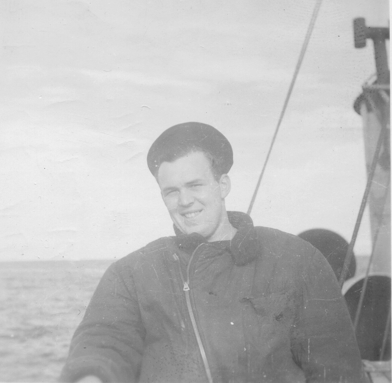 (HST032 - HST033) Flying fish found on bridge of HMCS NEW WESTMINSTER k228 (HST034) St. Pierre Harbour. Carley float of HMCS NEW WESTMINSTER K228 in the foreground Note: Photos HST027 - HST034 are misc. photos dated Jan 1944