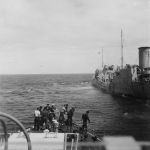Convoy HX.285 - NYC to Liverpool 28 Mar 1944 - 12 Apr 1944 (HST113 - HST115) HMCS NEW WESTMINSTER fueling from Norwegian oiler Kaia Knudsen