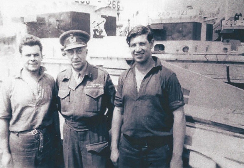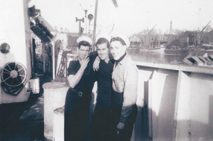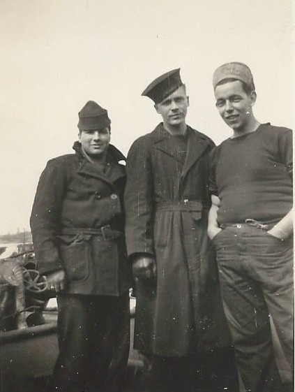 (GRR01) Carl Jensen, Cox'n, LCI(L) 266. Note the Combined Operations badge on his left shoulder and Killick badge (GRR02) Buzz Burrell, Seaman Gunner from Vancouver, BC, on LCI(L) 266 (GRR03) Unknown sailors on LCI(L) 266 Courtesy of Virginia McCann