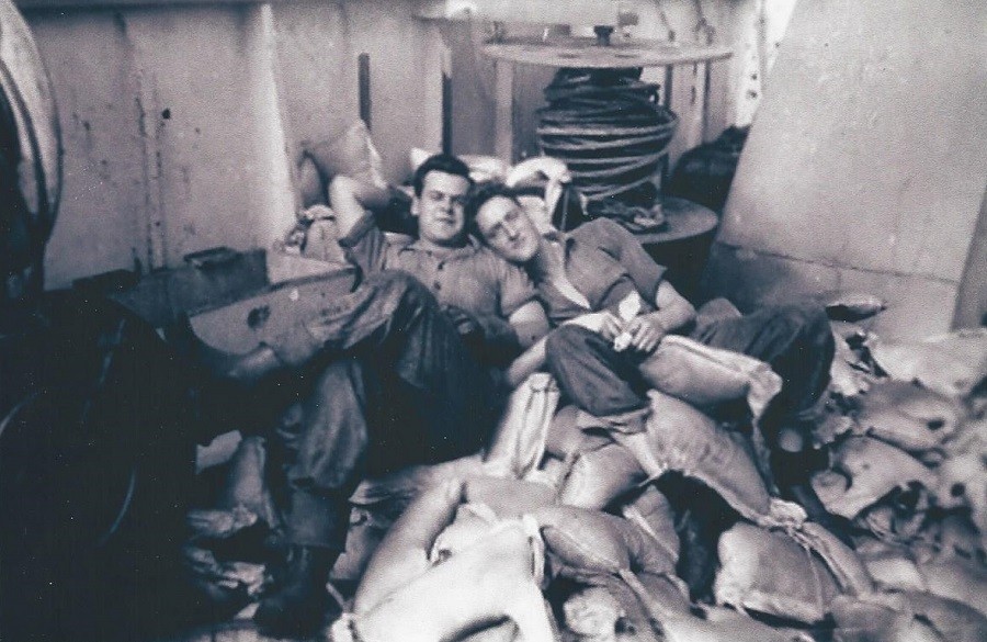 (GRR011) This anchor pendant was in George's collection of memorabilia when he crossed the bar. Where it was from is not known, but it obviously held some importance for George to keep it all these years (GRR012 - GRR013) George Rae on board of unknown ship (GRR014) George Rae and shipmate on unknown ship (GRR015) Sailors on unknown ship Note: The ship in photos GRR012 - GRR015 were taken on the same unknown ship