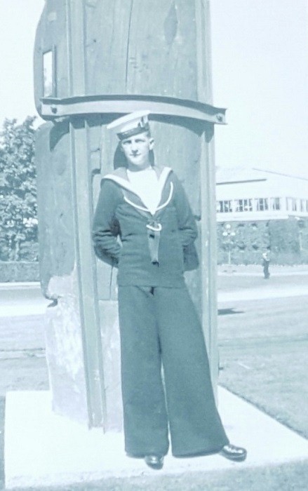 From George's daughter Virginia: I do know of Dad’s two best friends in the navy because they visited us in the 1950s with their families. (Robert) Burke Neddow (1924-2011) was from Saskatoon and Carey C. McKercher (1926-2006) was from Edmonton. According to my Gran Rae, Dad and Carey ran off one day and joined the RNCVR together. When they came home and told her what they’d done she was very worried. She spent the rest of the war knitting and sewing clothes for the Canadian Armed Forces. Must have sent hundreds of care packages over those years.
