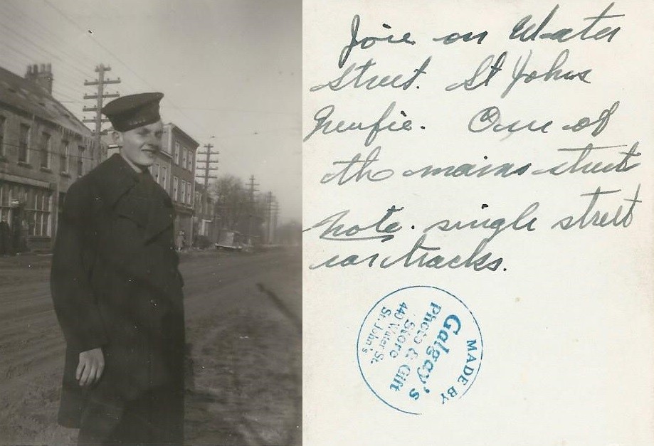 (GRR021) Unknown sailors taking a break on a pile of life jackets (GRR022) Unknown personnel on unknown landing craft. LCI(L)-266 and LCI(L)-121 in the background (GRR023) Unknown personnel on unknown landing craft (GRR024) George Rae, date and place unknown (GRR025) Joie on Water Street, St. John's, Newfoundland