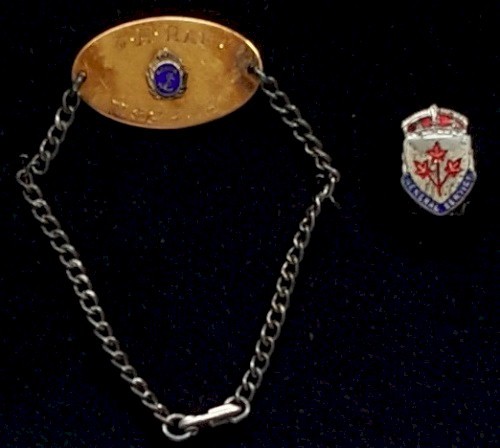(GRR006) ID Bracelet and General Service Pin (GRR007) Membership card for The Beaver Club, London, Spring Gardens, S.W. 1, 1940 (GRR008) Pass card for the Centenary Hall, Poole, U.K (GRR009) A few of George Rae's rail tickets while he was in Scotland and England (GRR010) Part of George Rae's kit, his "white front" or "dickie"