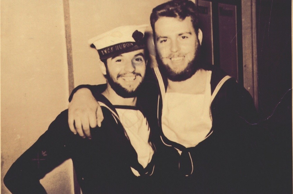 HMCS HURON 216 sailors ashore - location unknown (EA25) Earle Anderson on right (EA27) Earle Anderson onboard HMCS HURON 216