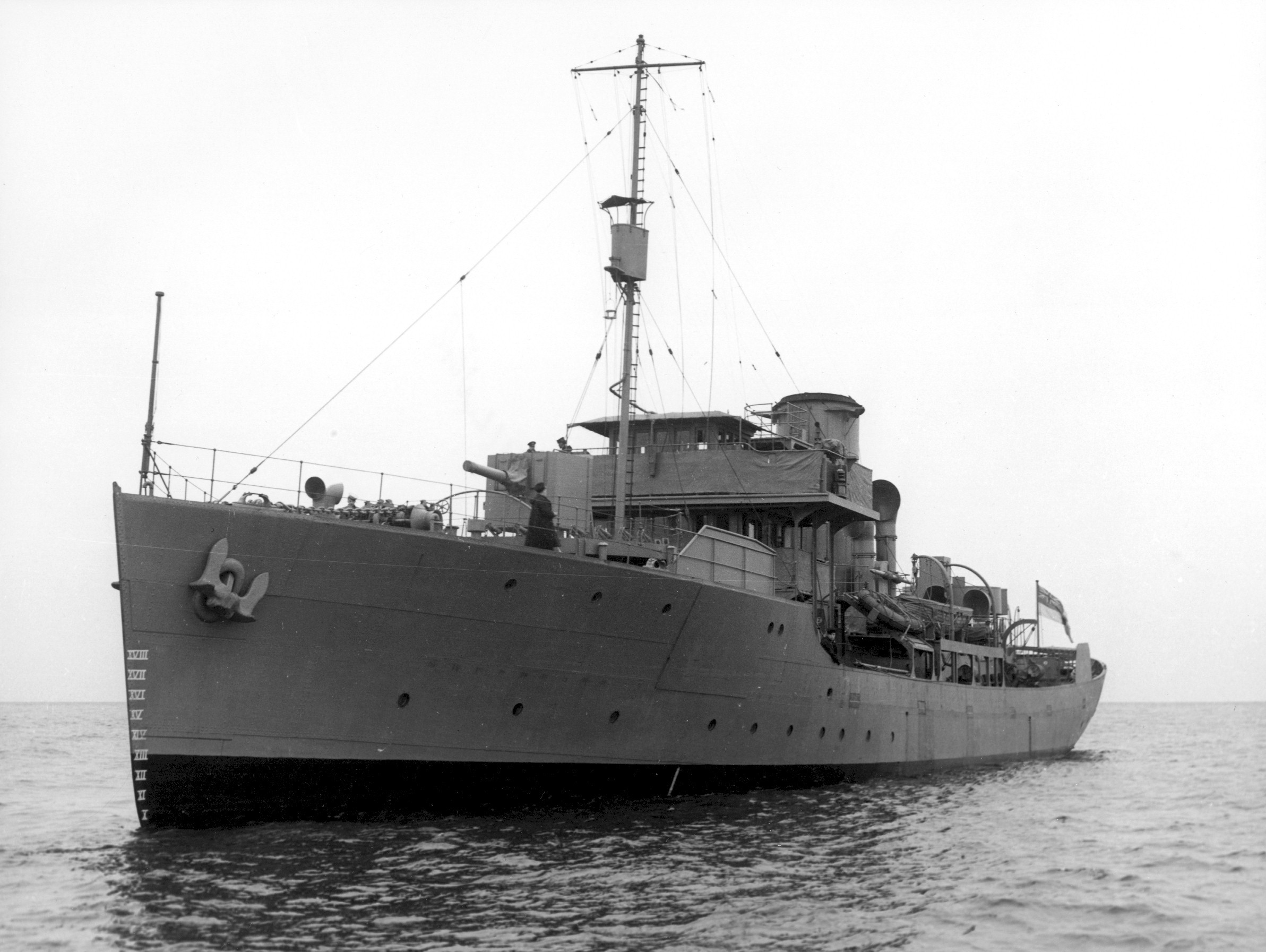 (HST027) Gunshield art on HMCS NEW WESTMINSTER K228 - 06 Jan 1944 (HST028 - HST030) HMCS NEW WESTMINSTER K228 (foreground) and cable ship Lord Kelvin (HST031) Gun deck and fo'c's'le of HMCS NEW WESTMINSTER K228