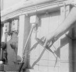 (HST105) HMCS NEW WESTMINSTER fueling from unknown oiler (HST106) HMCS NEW WESTMINSTER K228 hauling in line connect to fuel hose from unknown oiler. This is not the same oiler as in photo HST105. Webmaster's note: Photos HST105 and HST106 were in the same batch of photos (based on developer's numbers) as the convoy SC153 photos, however in photos HST086 - HST090, NEW WESTMINSTER does not yet have her rocket launchers on the side of the gun mount - but in these photos her rocket launchers are visible. The oilers in both these photos are different from photos HST086 -HST090, which means there 2 photos were taken at later dates
