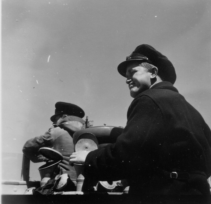 Officers and ratings of HMCS NEW WESTMINSTER K228 - 1944 (HST066) Lt David A. "Sandy" Sim, XO (HST067 - HST068) Lt George D. Millson - Feb 1944 (HST069) SLt William A. "Bill" Young on watch (HST070) Jack Holmes of Victoria, BC