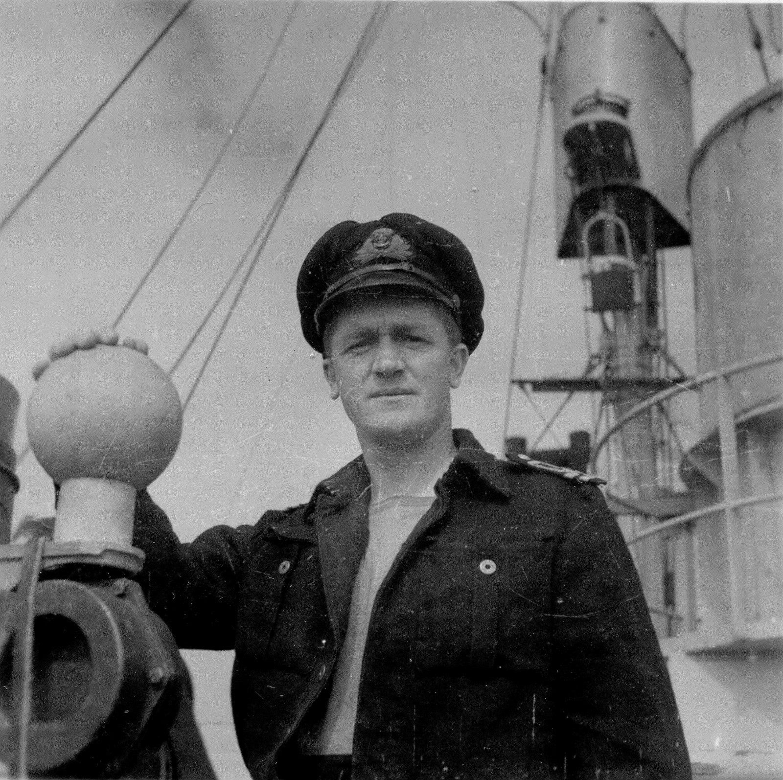 Officers and ratings of HMCS NEW WESTMINSTER K228 - 1944 (HST071) Yeoman A.W. Moore (HST072) Lt Ronald Cass - Electrical Lieutenant /Group Radar Officer. Note: Lt Cass was serving in HMCS Dunver at this time. As group Elect/Radar officer he would have been on the ships of the EG at various times. (HST073) Lt Campbell E. Cork, MBE, from Toronto, ON. Passenger on HMCS NEW WESTMINSTER - 1944 (HST074 - HST075) Lt Roy Rowsell