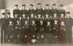HMCS York Naval Field Gun Crew - Aug 1943 Frank Belcher, 7th from right Source: Ian MacNeill Collection, Ancestry.com